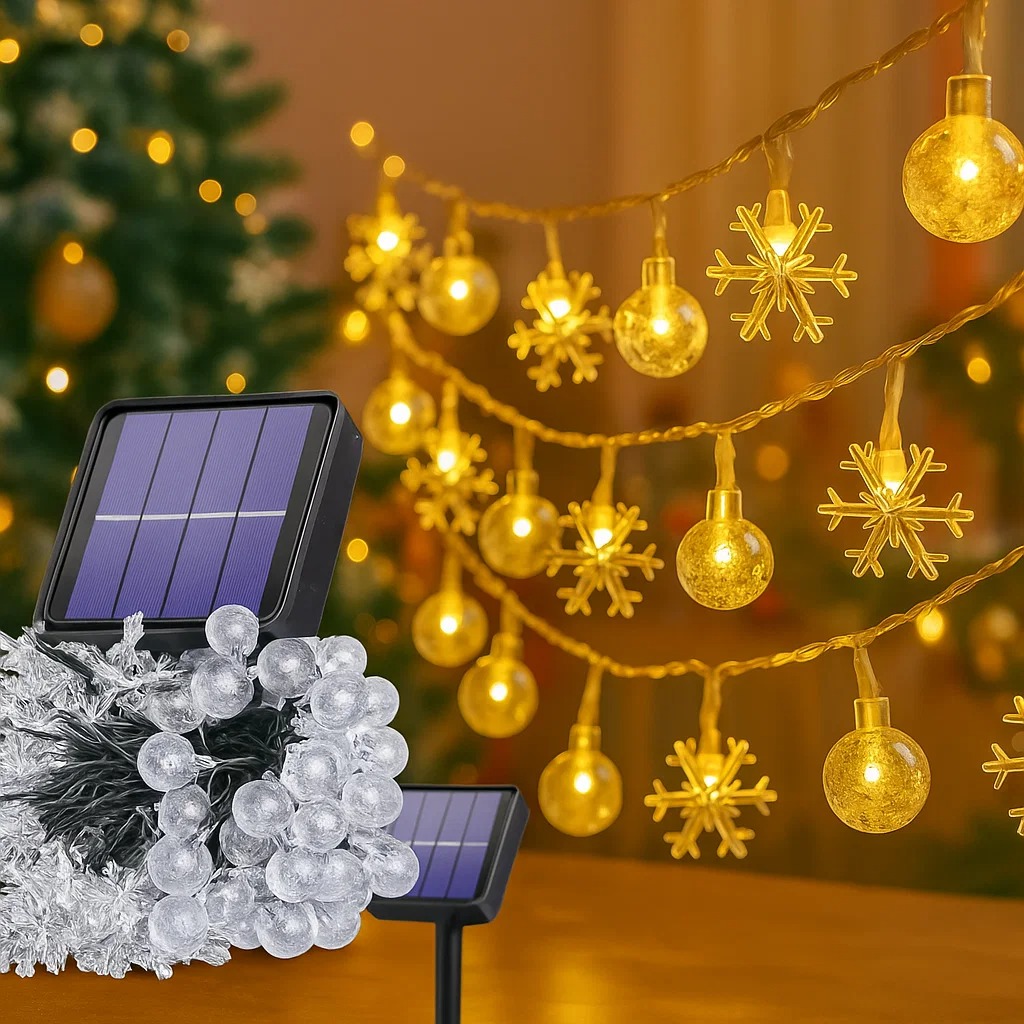 ¿Tu decoración navideña no logra ese impacto mágico que deseas? StellaLux™ llega para transformar cualquier rincón en un espectáculo luminoso y encantador, sin enchufes ni gastos adicionales en electricidad. Con bolas de luz y copos de nieve brillantes, esta guirnalda solar hará que tu casa destaque esta temporada.